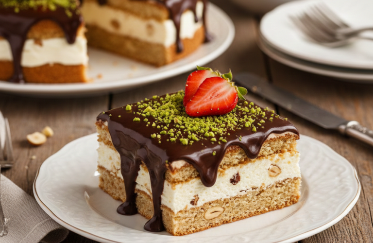 6. Birleştirin: Çikolata sosu hafif oda sıcaklığına gelince, pastanın üzerine her yerini kaplayacak şekilde gezdirin.